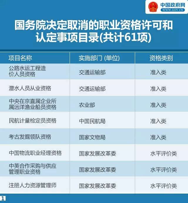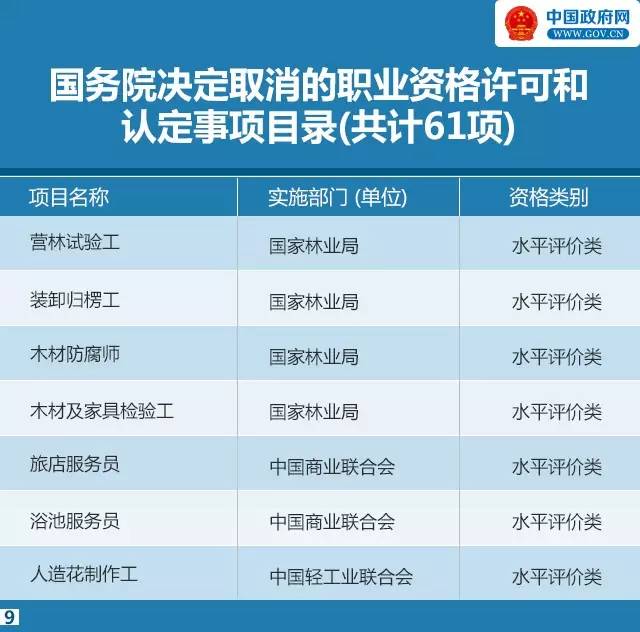 國務院決定取消的職業(yè)資格許可和認定事項目錄